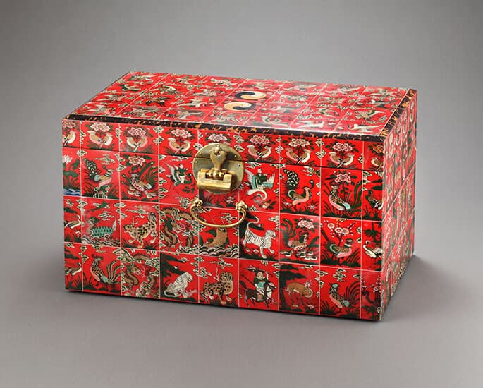 - 화각 함(函): 조선 시대에는 여성들이 사용하는 화장함이나 반짇고리함에 화각이 많이 사용되었다. 이는 화각의 섬세한 문양과 은은한 광택이 여성들의 생활용품과 잘 어울렸기 때문이다.